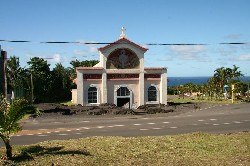 Es geht weiter zu einer Kirche, vor der der Lavastrom des Jahres 1977 gerade noch rechtzeitig halt gemacht hatte. Sie heißt deshalb auch "Notre dame des laves". Auf dem Weg dorthin steigen wir an einem Lavafeld aus, dass erst von 2004 stammt und sich bis hinunter zum Meer ergoss. Der Piton de la Fournaise ist immer noch ein sehr aktiver Vulkan und meldet sich alle paar Jahre wieder. Diese Platten aus erkalteter Lava sind schon etwas Besonderes. Manche glitzern förmlich in der Sonne. Nachdem wir bei der von der Lava verschonten Kirche eine kleine Pause eingelegt hatten, geht es weiter zu einer schönen kleinen Bucht unten am Indischen Ozean. Endlich habe ich auch ein paar Postkarten erstanden. In diesen kleinen Buchten kann man leider nicht baden, da die Strömung dort gefährlich ist und es Haie gibt. Schade!